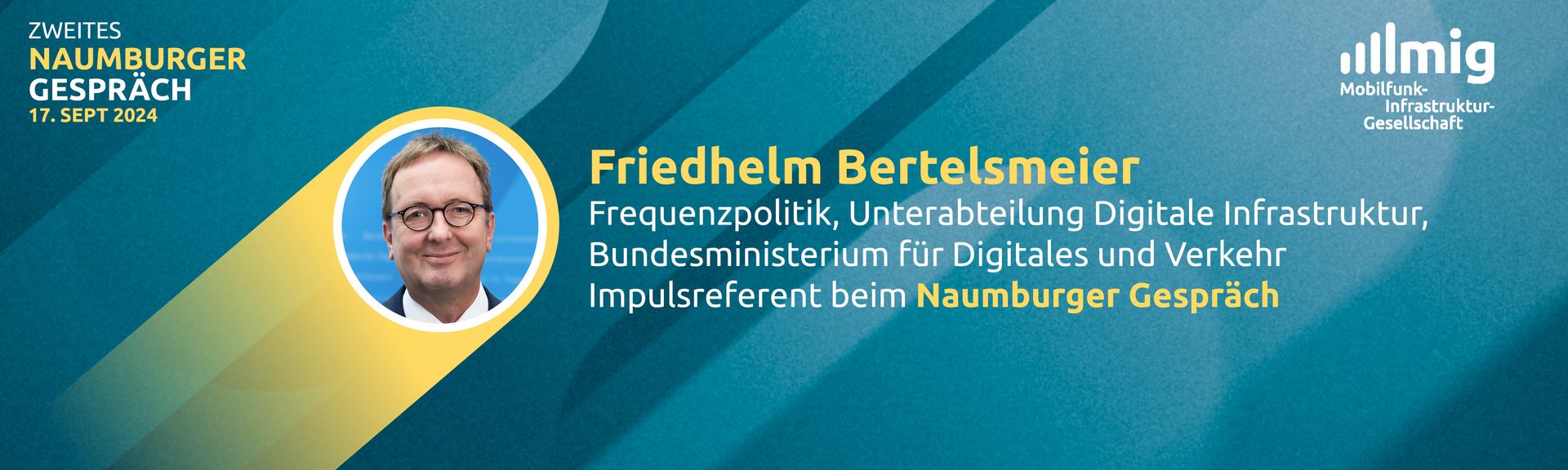 Eingeleitet wird das Podiumsgespräch durch ein Impulsreferat von Friedhelm Bertelsmeier. Er ist Referatsleiter Frequenzpolitik im Bundesministerium für Digitales und Verkehr. Seit Mitte der 1990er Jahre ist der Experte in verschiedenen Institutionen der Bundesverwaltung tätig. Unter anderem befasste er sich von 2010 bis 2015 sehr stark mit dem Ausbau der digitalen Infrastruktur.