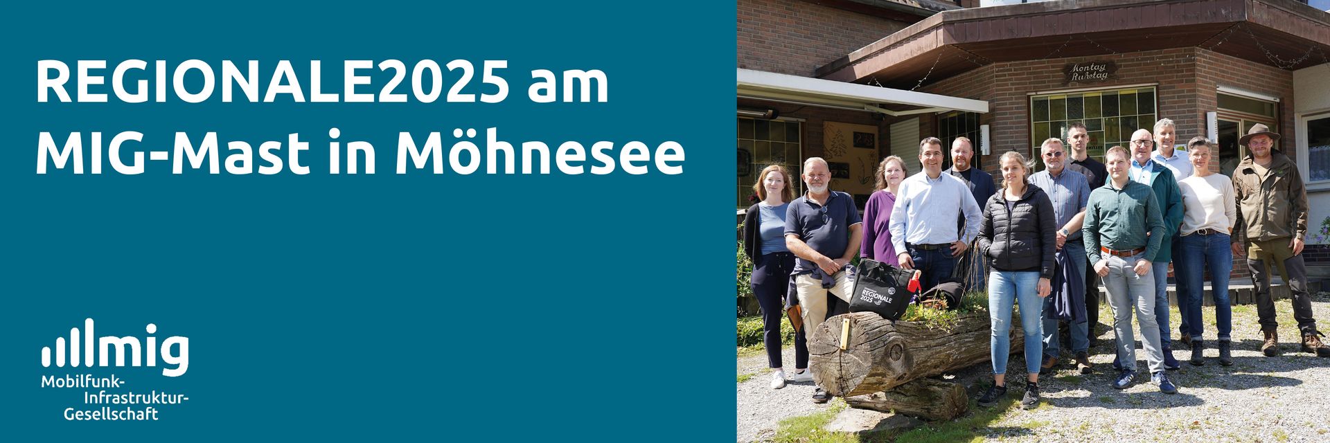 Gestern waren die Mobilfunk- und Gigabitkoordinatoren der südwestfälischen Landkreise im Rahmen der #REGIONALE2025 unterwegs. Auf Ihrer von der TelekommunikationsGesellschaft Südwestfalen mbh organisierten Tour besuchten sie verschiedene vom Land Nordrhein-Westfalen geförderte Projekte. Eine Station war der von der MIG geförderten Mobilfunkmast in Möhnesee.