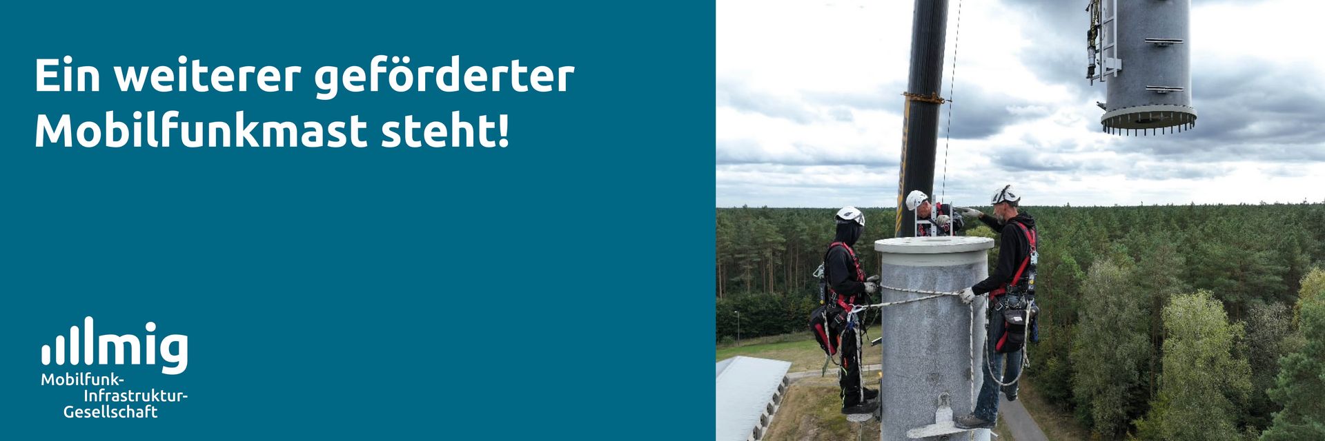 Heute, am 10. September, wurde durch die Firma Fuchs-Europoles GmbH im Auftrag der DFMG Deutsche Funkturm GmbH ein weiterer von der MIG geförderter Mobilfunkmast errichtet. Gebaut wurde der 46 Meter hohe Turm in der brandenburgischen Gemeinde Neuruppin. Dort wird er eine Versorgungslücke so groß wie 245 Fußballfelder schließen.