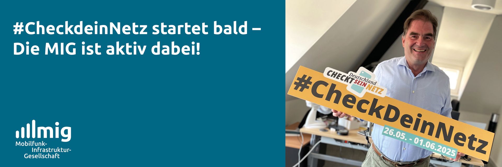 Der Countdown läuft: Nur noch 12 Tage bis zum Start der bundesweiten Mobilfunk-Messwoche #CheckdeinNetz. Die MIG ist dabei und checkt eifrig mit! Unser Geschäftsführer Ernst Ferdinand Wilmsmann rührt schon eifrig die Werbetrommel und wird auch von seiner Assistentin Kristin Kluge tatkräftig unterstützt. Denn wir wissen: „wo Menschen sind, muss Mobilfunk sein“!
